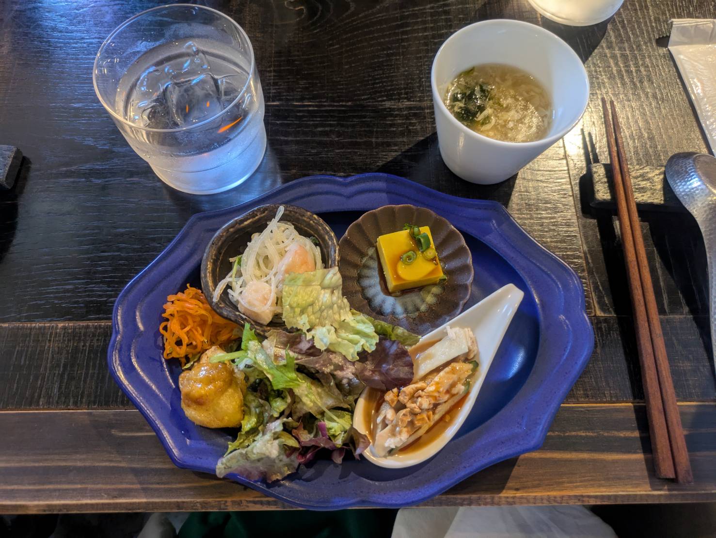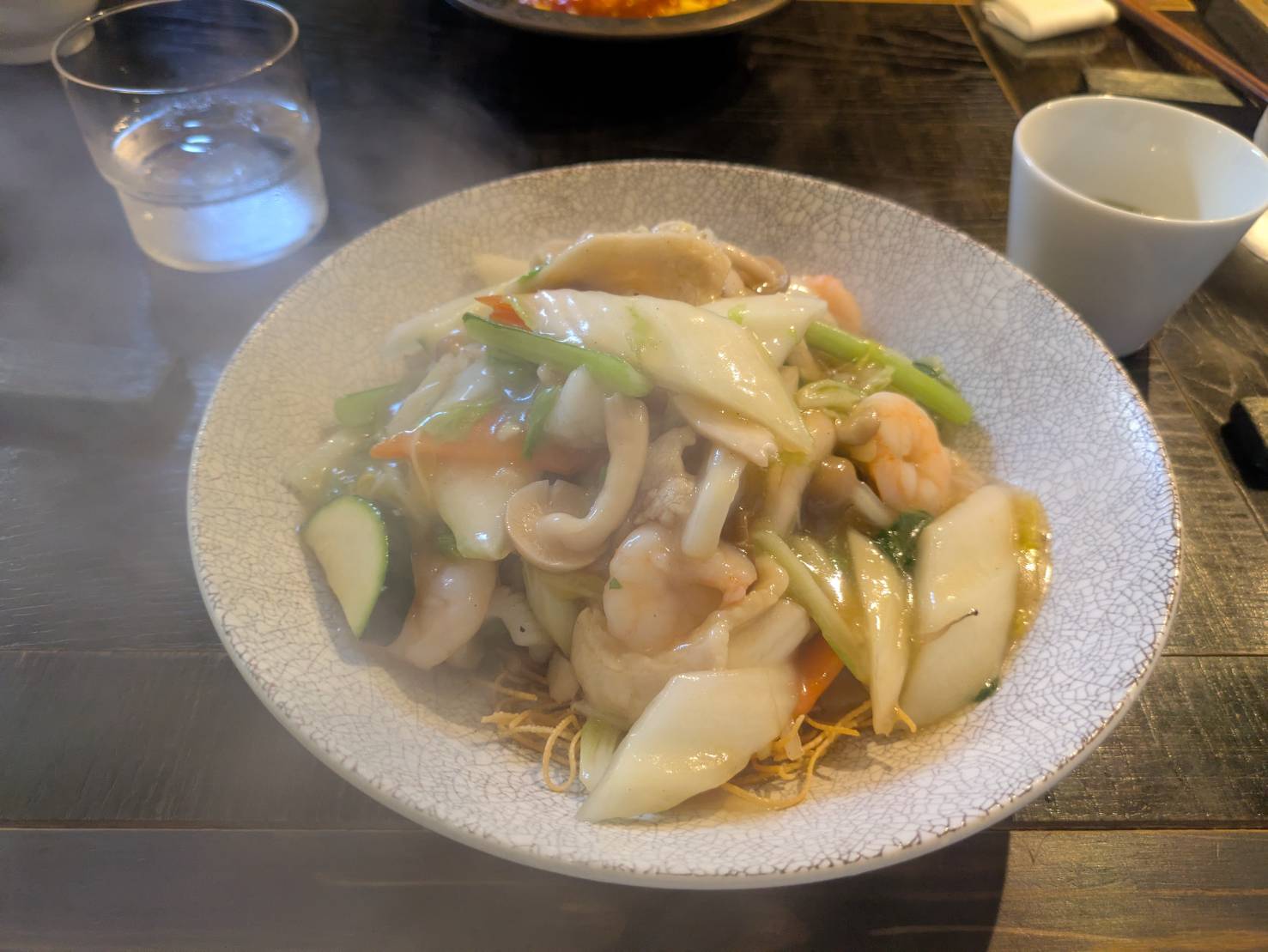 何種類かのメニューの中から私は五目あんかけパリパり麺+(前菜・スープ)にしました。