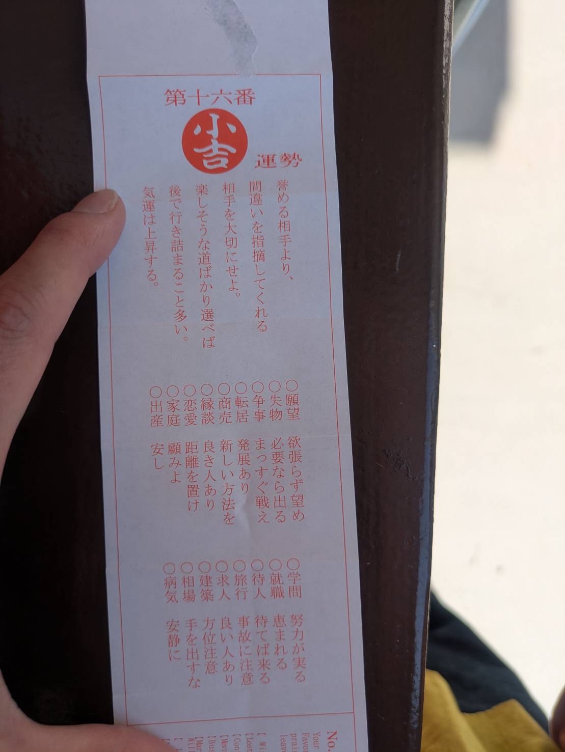 結果は小吉。良いのか悪いのか・・・微妙な感じでした(#^^#)