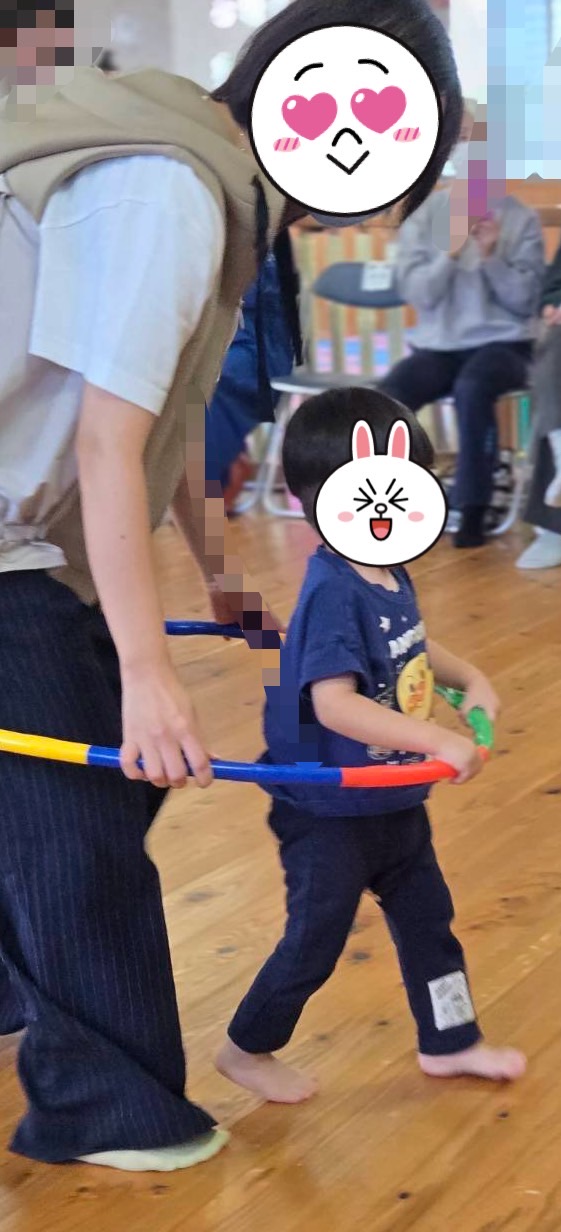 フラフープを引いてダッシュ!!後半は楽しく参加出来ました。