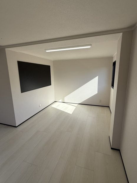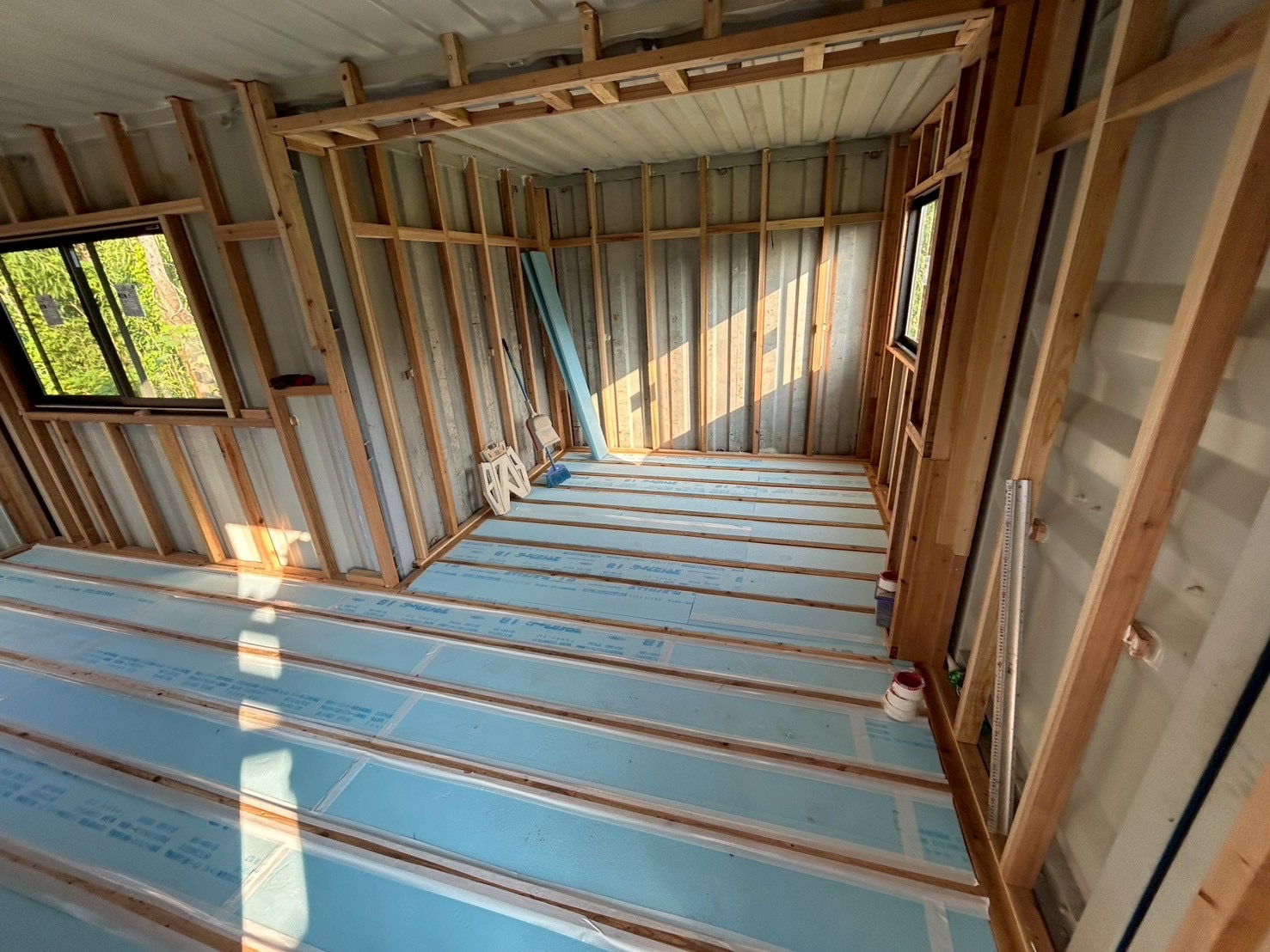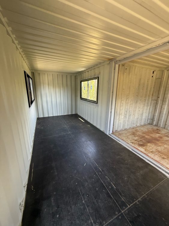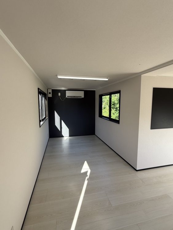 元はコンテナハウス!? コンテナだってリフォーム次第で素敵な空間に様変わりです。 快適空間で事業所として活躍予定です。 AFTER 断熱をしっかりと行い、二つのコンテナを繋げた事で生じた段差も綺麗に補修。元がコンテナだったとは思えない仕上がりになりました。 BEFORE 長方形のコンテナ2つを横並びにして接する面の壁を外した状態です。 画像クリックで拡大します