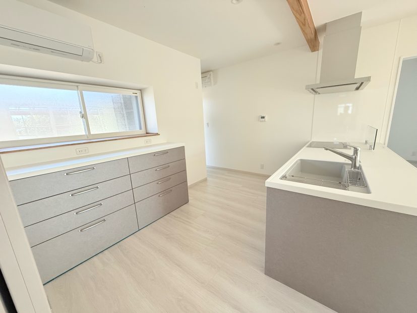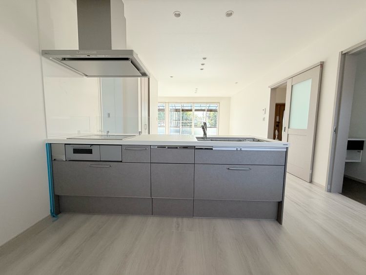 Panasonic「ラクシーナ」スクラッチメタル柄の上品なグレーで、料理好きのご施主さま念願の“広々キッチン”に(^O^)/